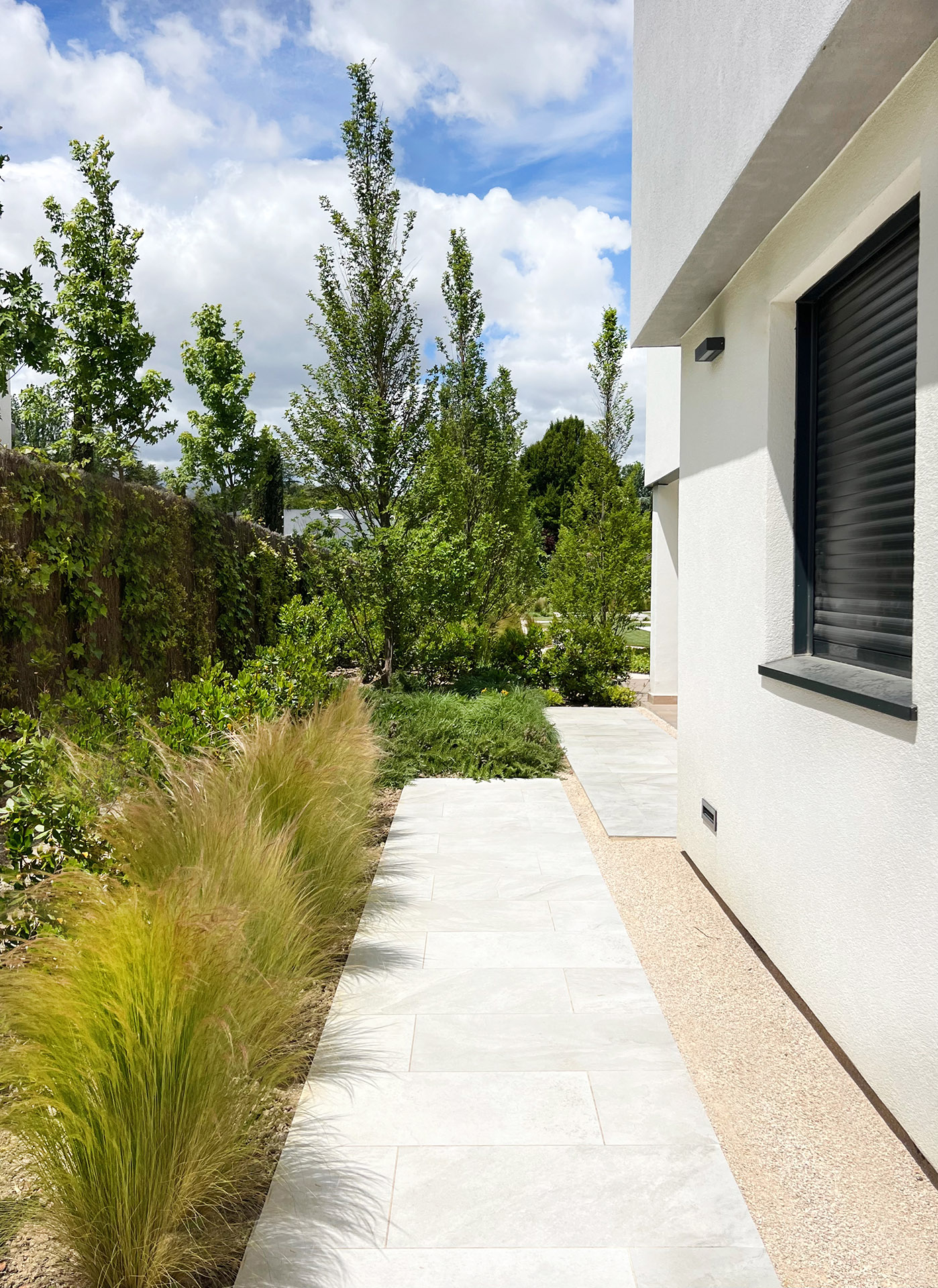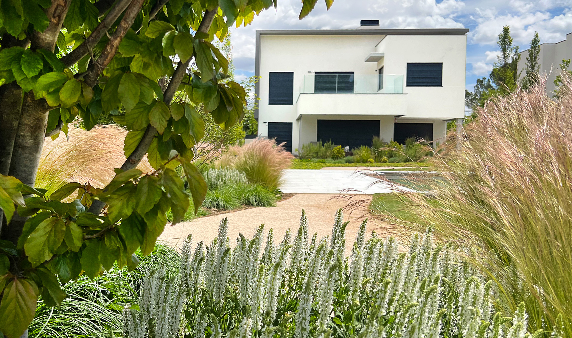Hemos priorizado el uso de la flora nativa. En nuestro diseño, hemos combinado especies autóctonas con plantas ornamentales, empleando capas de vegetación y diferentes niveles de altura para añadir profundidad y estructura al jardín.