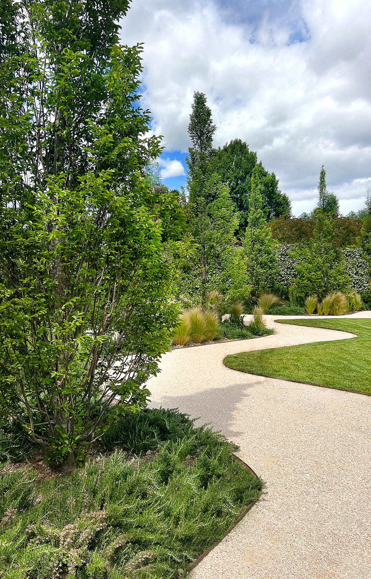 Los caminos recorren el jardín y proporcionan una sensación de exploración. Las curvas que conforman el diseño, crean a su vez espacios de recogimiento desde los que se generan distintas vistas del jardín.